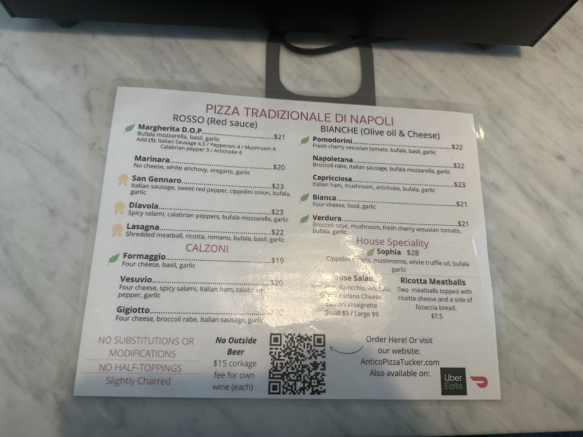 Antico Pizza Tucker Menu
